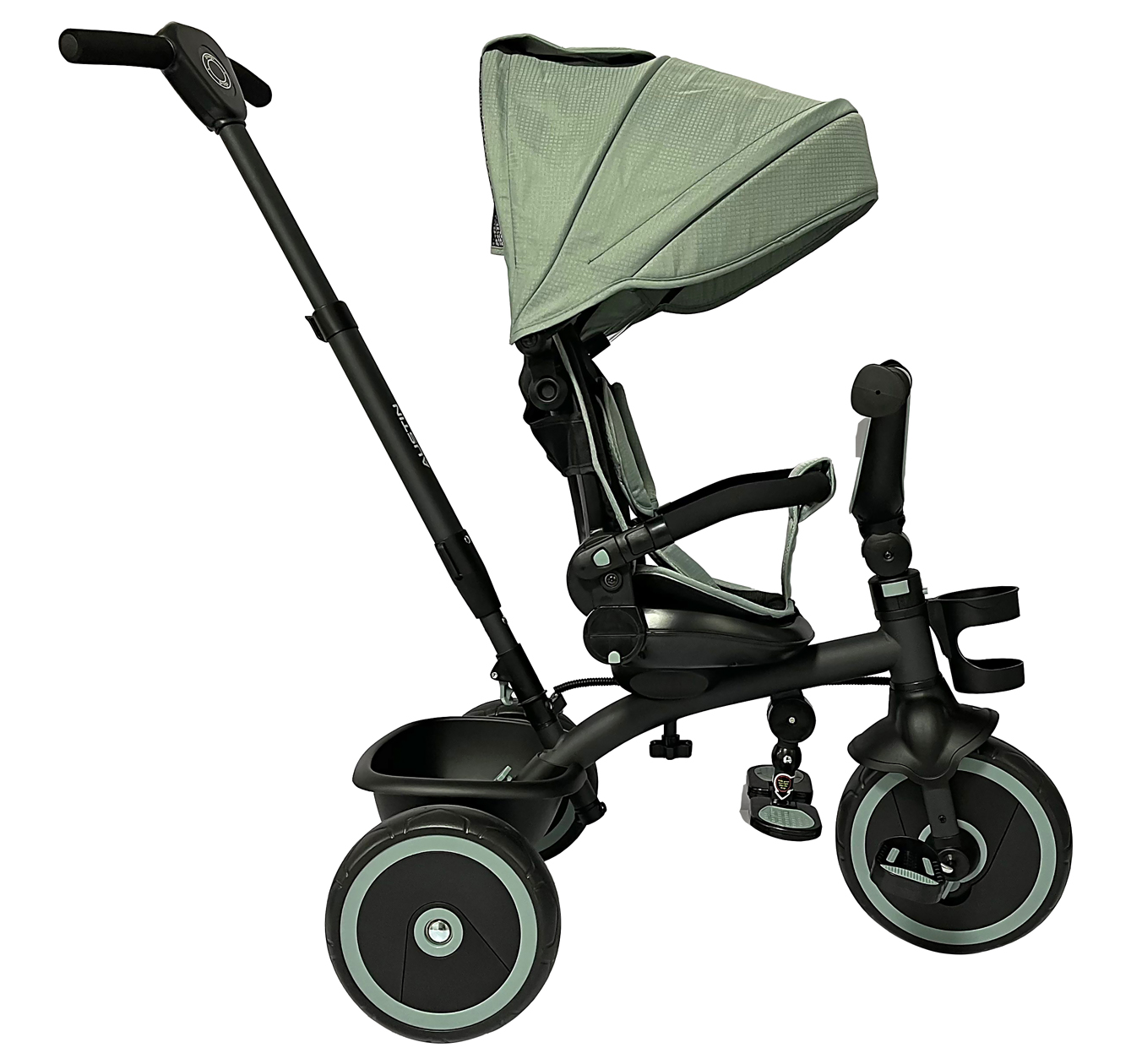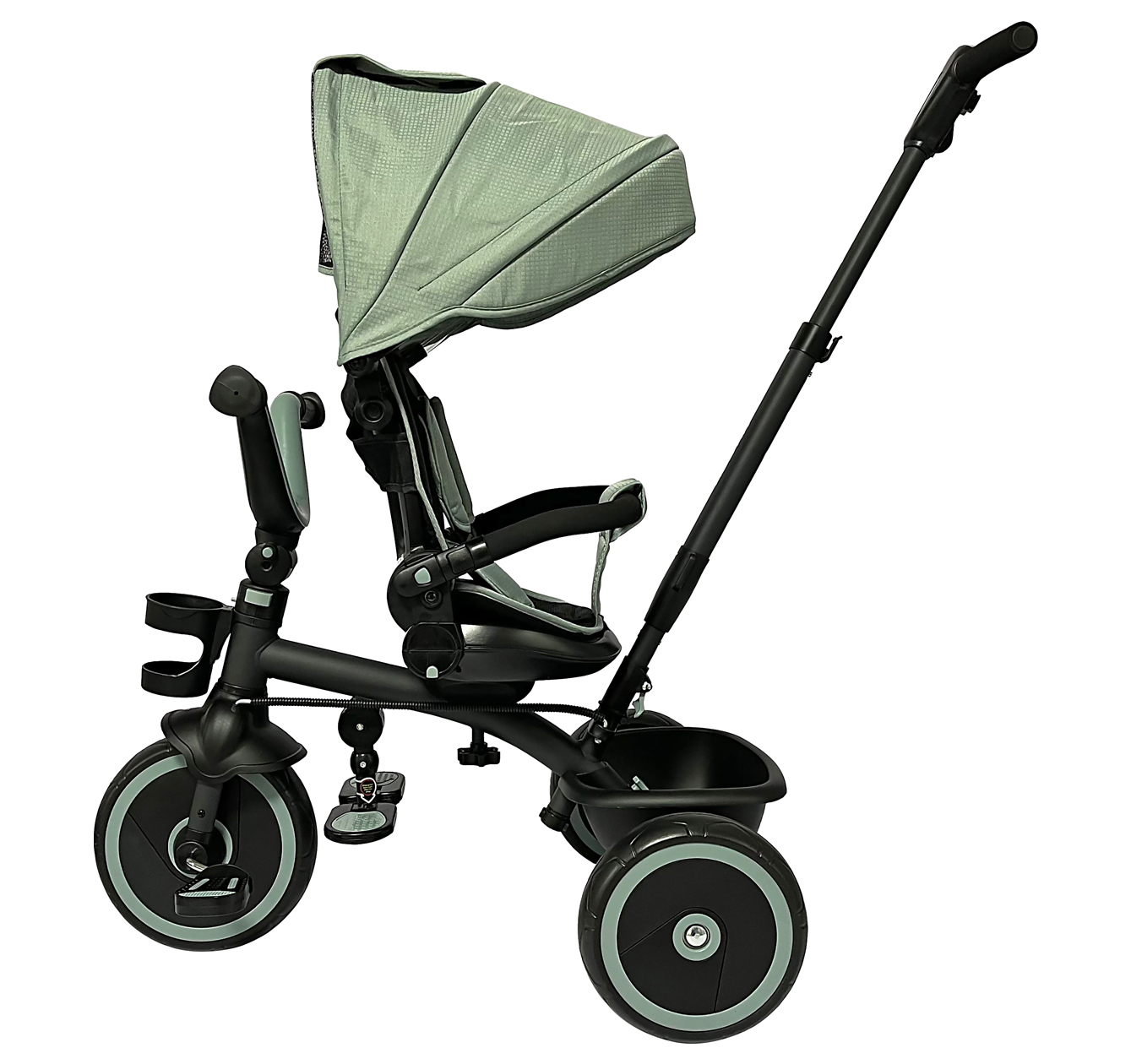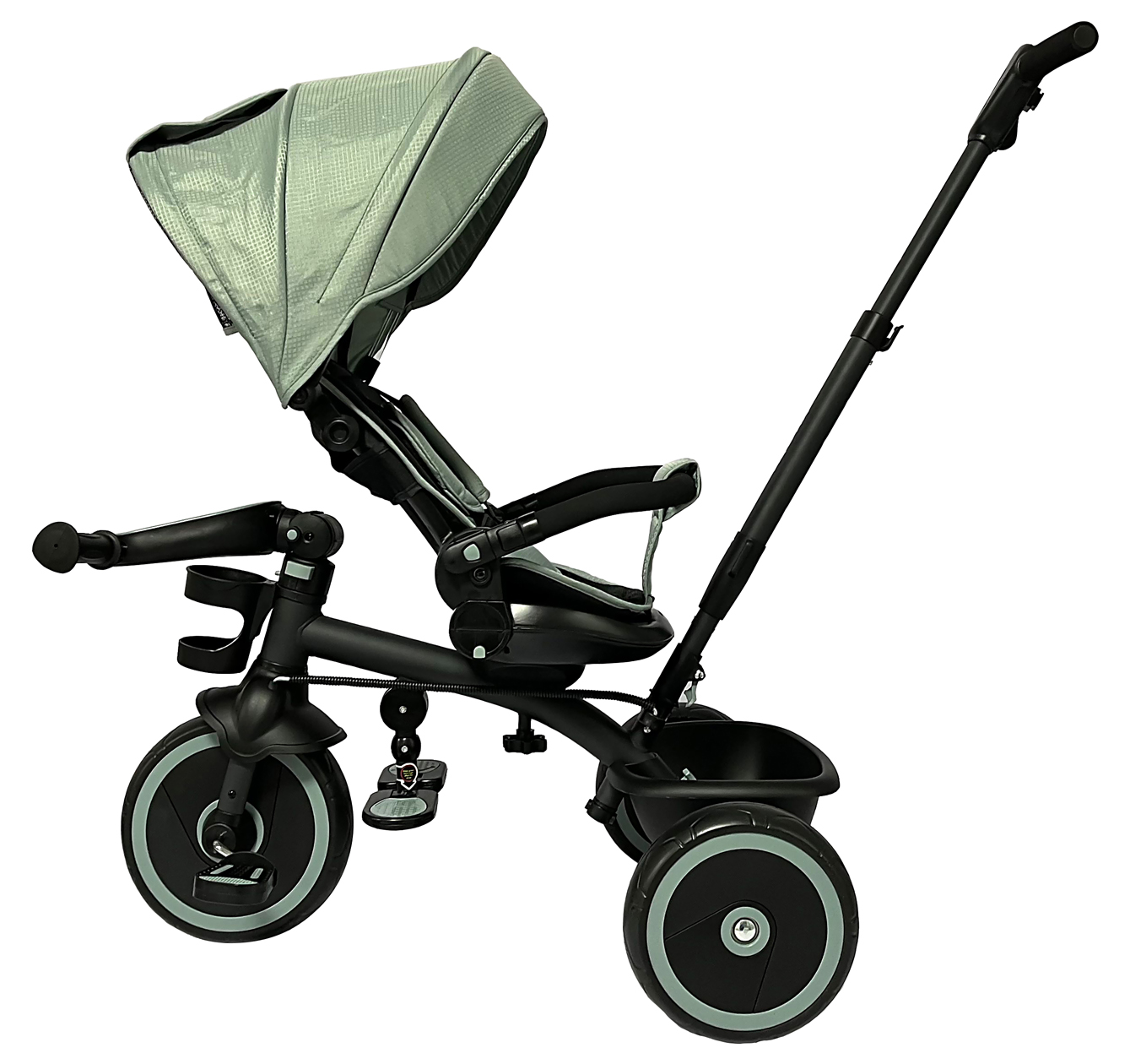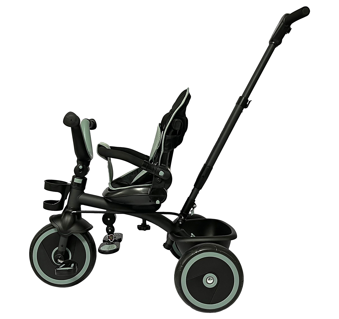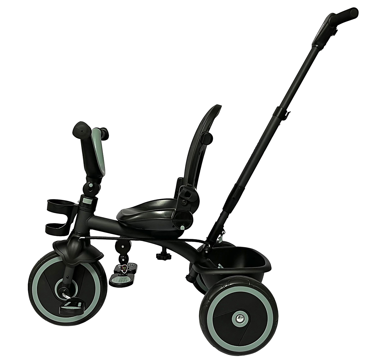 Çocuk eşyalarını taşımak için geniş arka sepet.