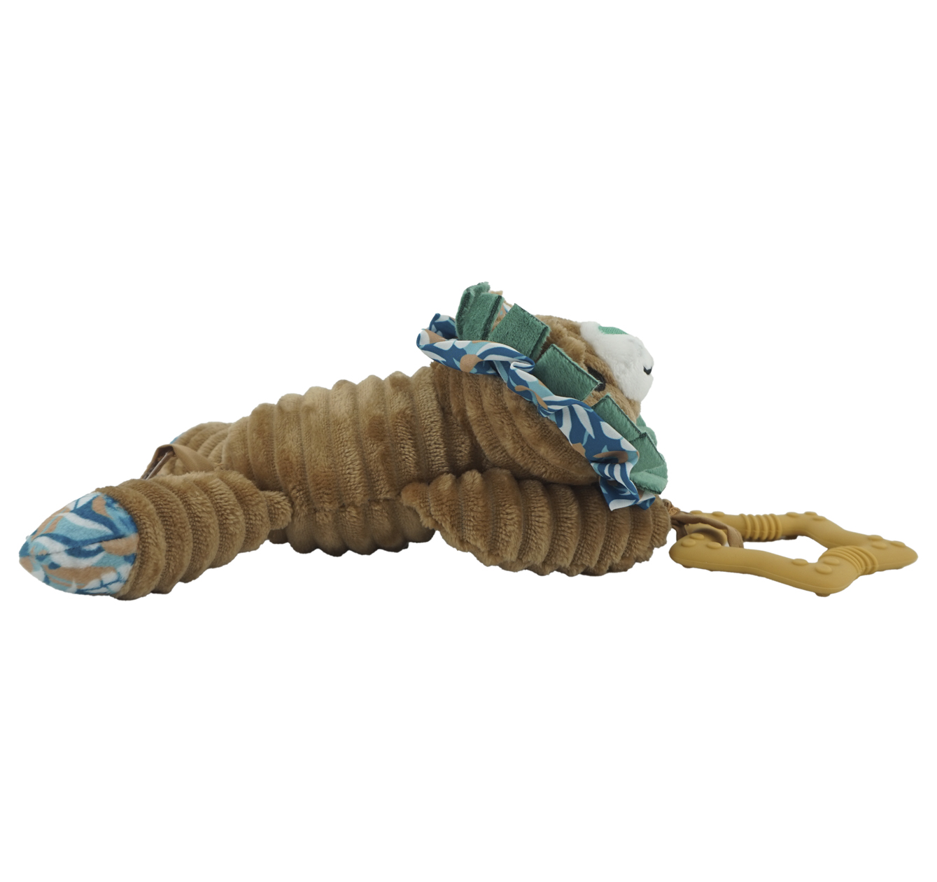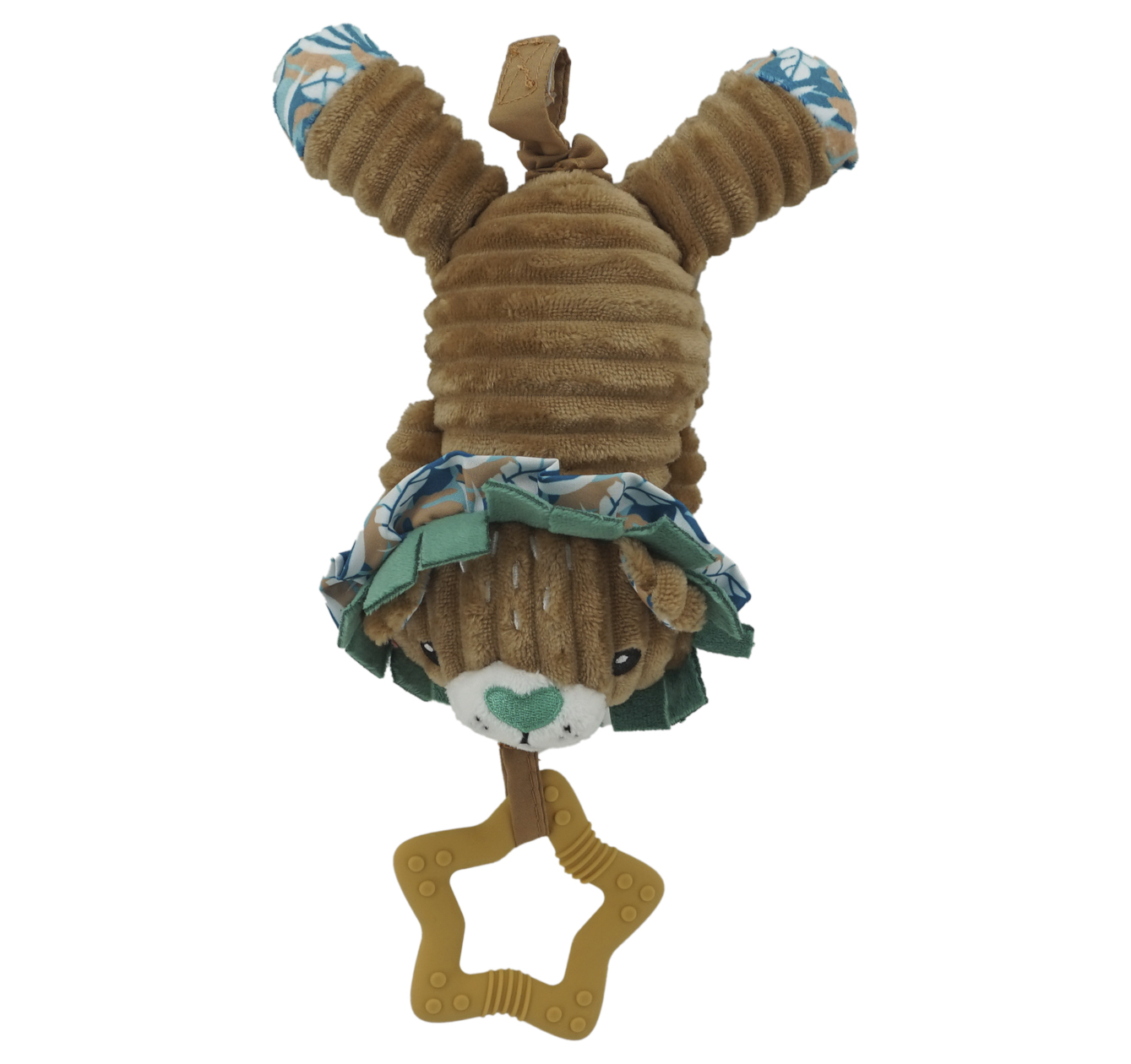 It helps soothe the baby with its vibration feature while supporting sensory development through its soft plush texture and movable hanging toys.
