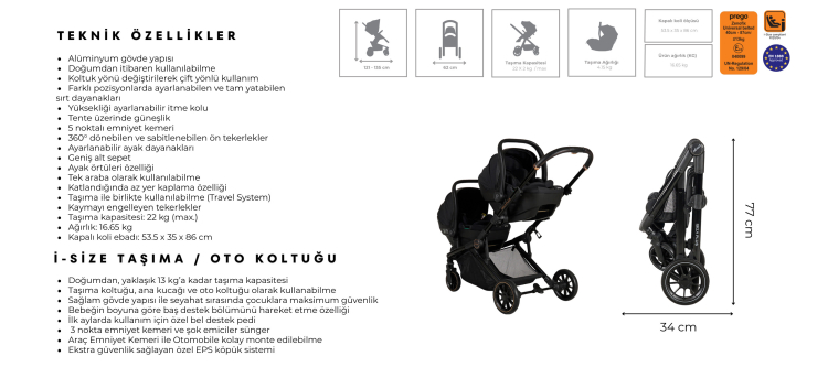 Doğumdan, yaklaşık 13 kg’a kadar taşıma kapasitesi