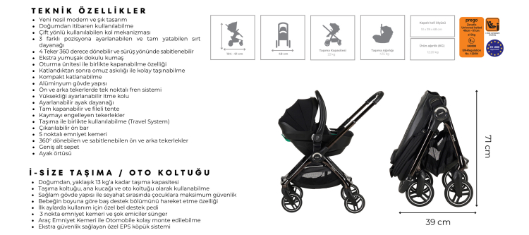 Doğumdan, yaklaşık 13 kg’a kadar taşıma kapasitesi