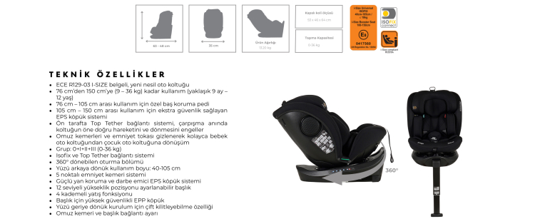 ECE R129-03 I-SIZE belgeli, yeni nesil oto koltuğu