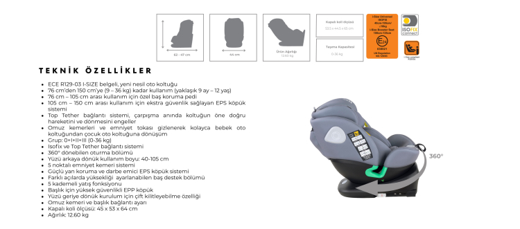 ECE R129-03 I-SIZE belgeli, yeni nesil oto koltuğu