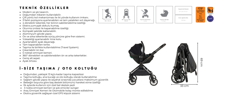 76 cm’den 150 cm’ye (9 – 36 kg) kadar kullanım (yaklaşık 9 ay – 12 yaş)