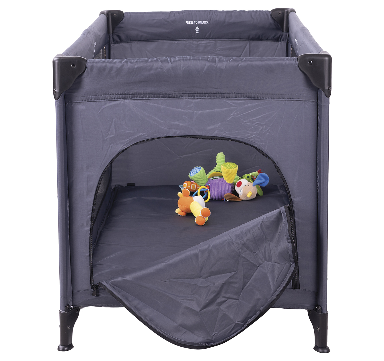 Kısa kenarda bebeğin parka kolaylıkla girip çıkabileceği fermuarlı pencere