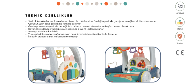 Sevimli karakterler, canlı renkler ve piyano ile müzik çalma özelliği sayesinde çocuğunuza eğlenceli bir ortam sunar